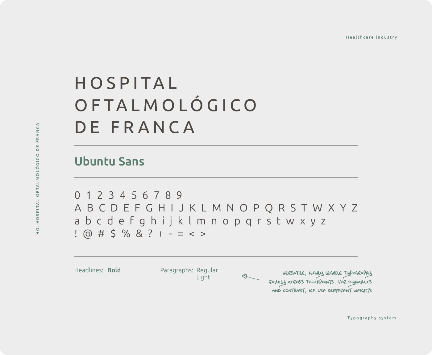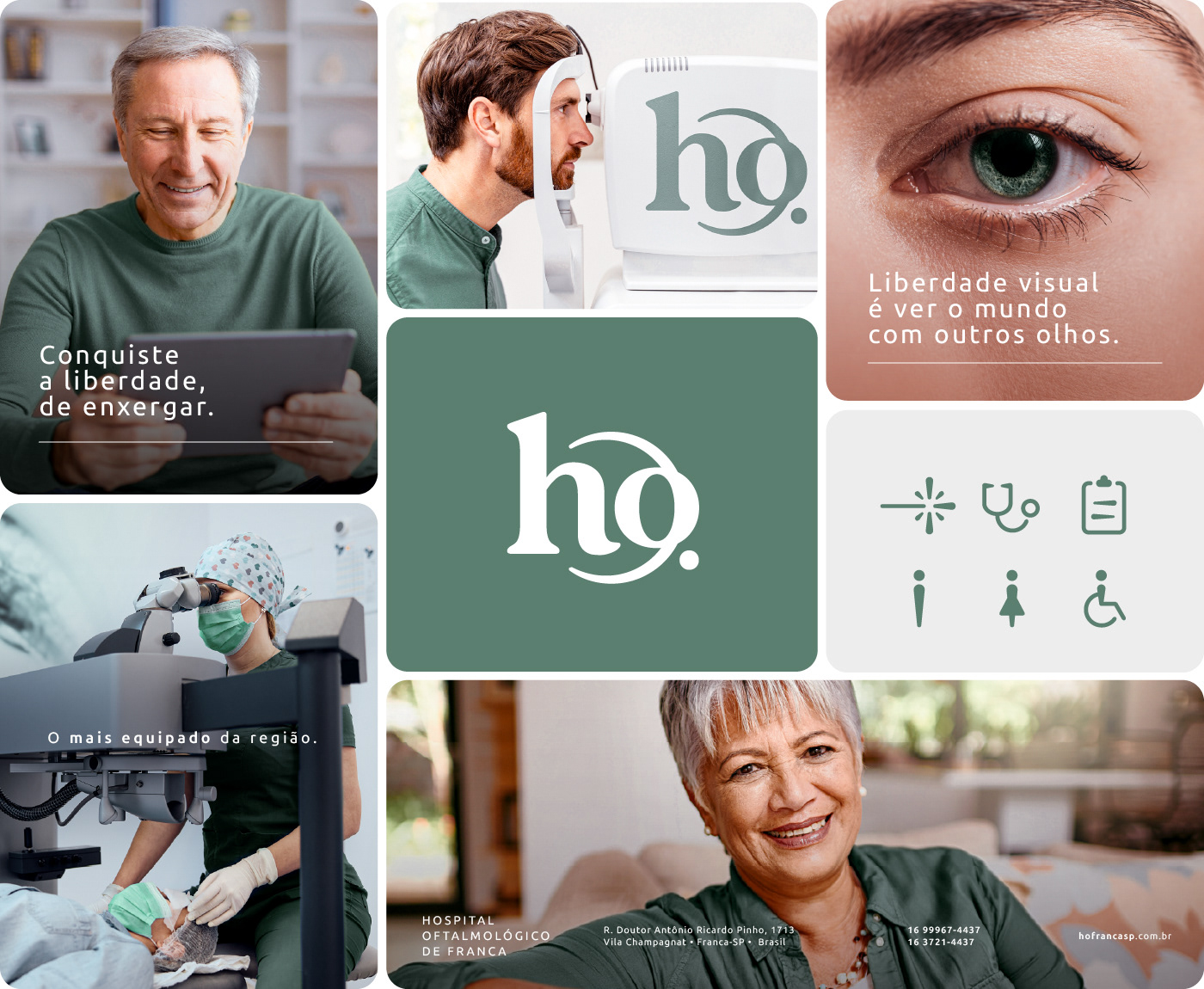 Hospital Oftalmológico de Franca emerges with a technological medicine proposition, focused on equipment and infrastructure to deliver excellence in refractive and cataract surgeries. As a premium yet accessible service, the hospital needed a brand that conveyed authority and technology even with minimal presence at touchpoints, prioritizing a clear and easily recognizable name.